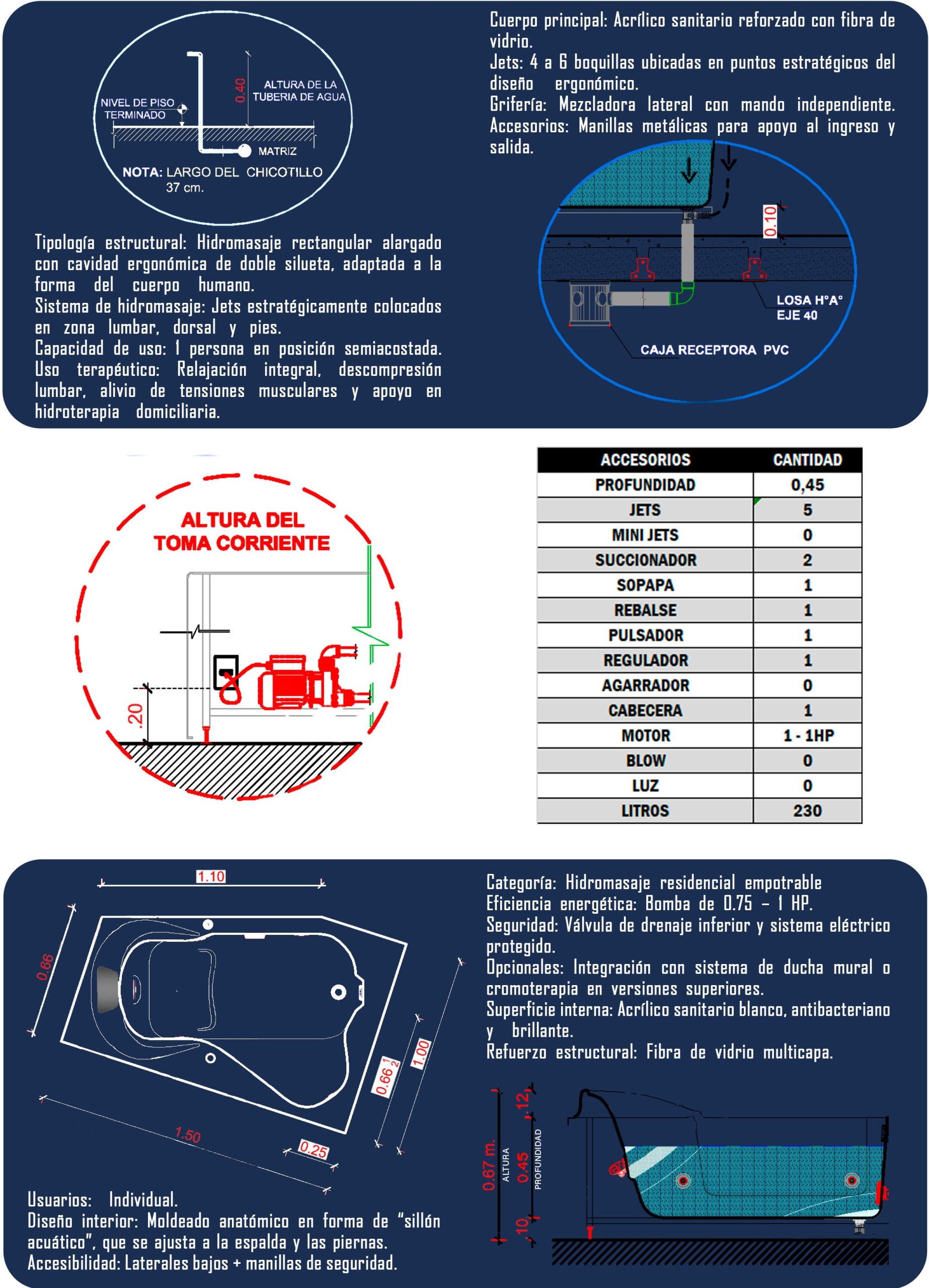 Potencia, estilo y relajación en una sola creación. El hidromasaje QUIMERA, fabricado en fibra de vidrio de alta resistencia, ofrece un masaje intenso y envolvente gracias a sus chorros estratégicamente ubicados que ayudan a aliviar tensiones profundas, mejorar la circulación y recargar tu energía.