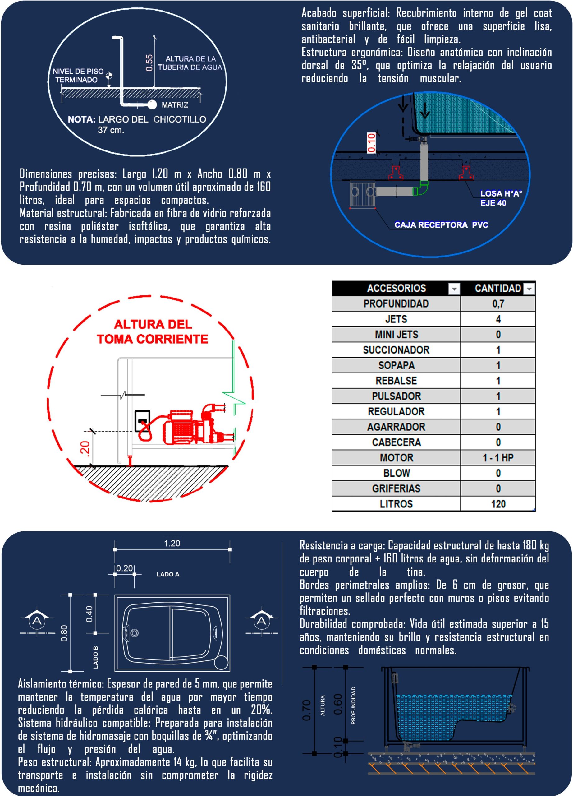 La opción ideal para disfrutar de bienestar en espacios reducidos sin renunciar al confort. El hidromasaje Relax Pequeño, elaborado en fibra de vidrio de alta resistencia, brinda un masaje efectivo y reconfortante gracias a sus chorros estratégicamente ubicados que alivian el estrés y relajan los músculos.